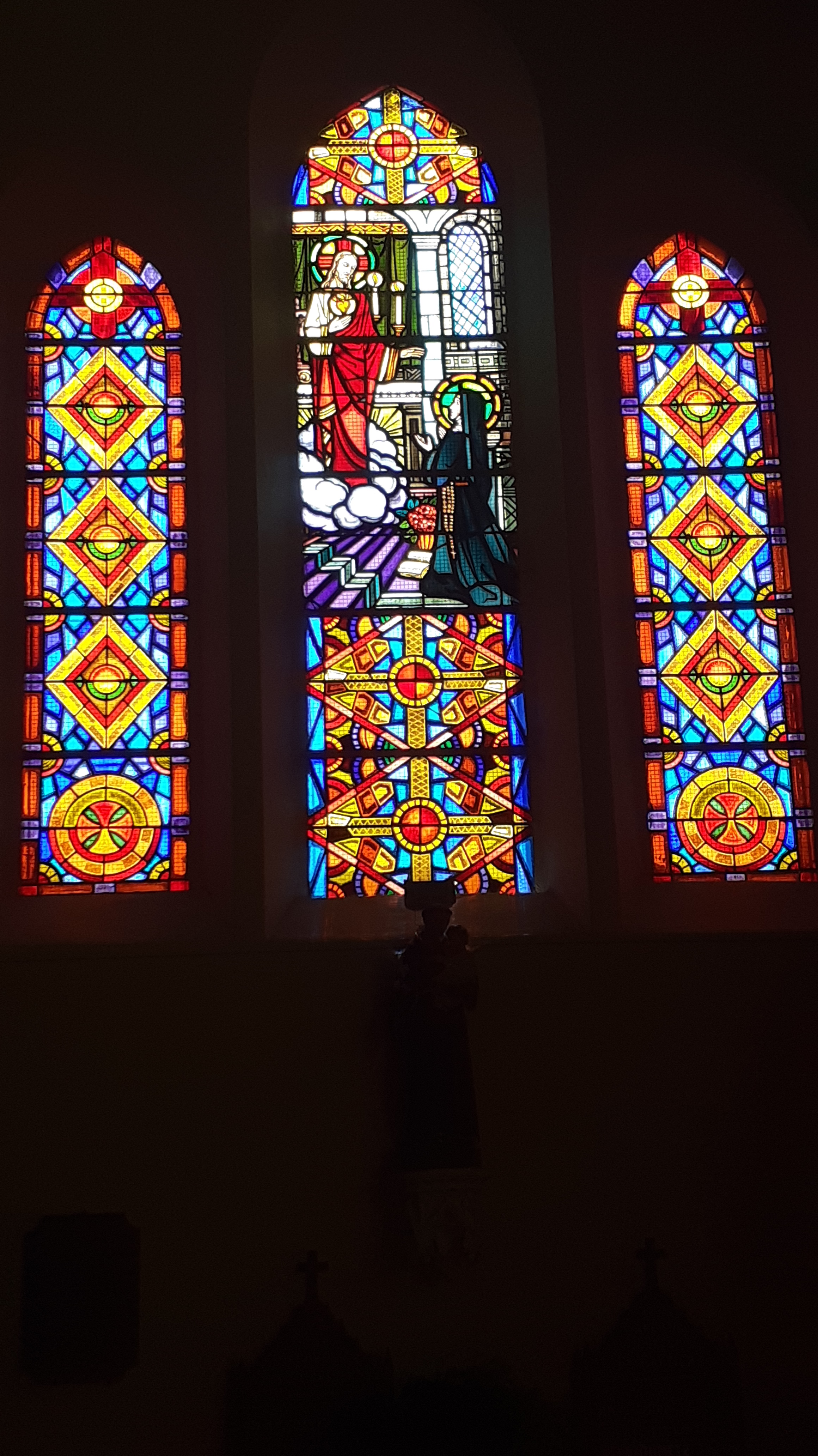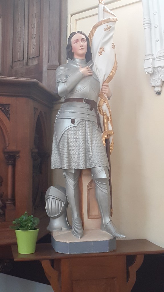 As I opened the door to the church I was aware that music was playing – it seemed like a Jacques Brel melody. It was curiously soothing like a siren call. I was immediately overcome with a sense of peace. Whether it was the effigy to La Pucelle (Joan of Arc) who was burnt at the stake as a witch by the English at Rouen in 1431 or the the stained glass windows glinting in the midday sun, I don’t know, but I was overcome by the need to pray.