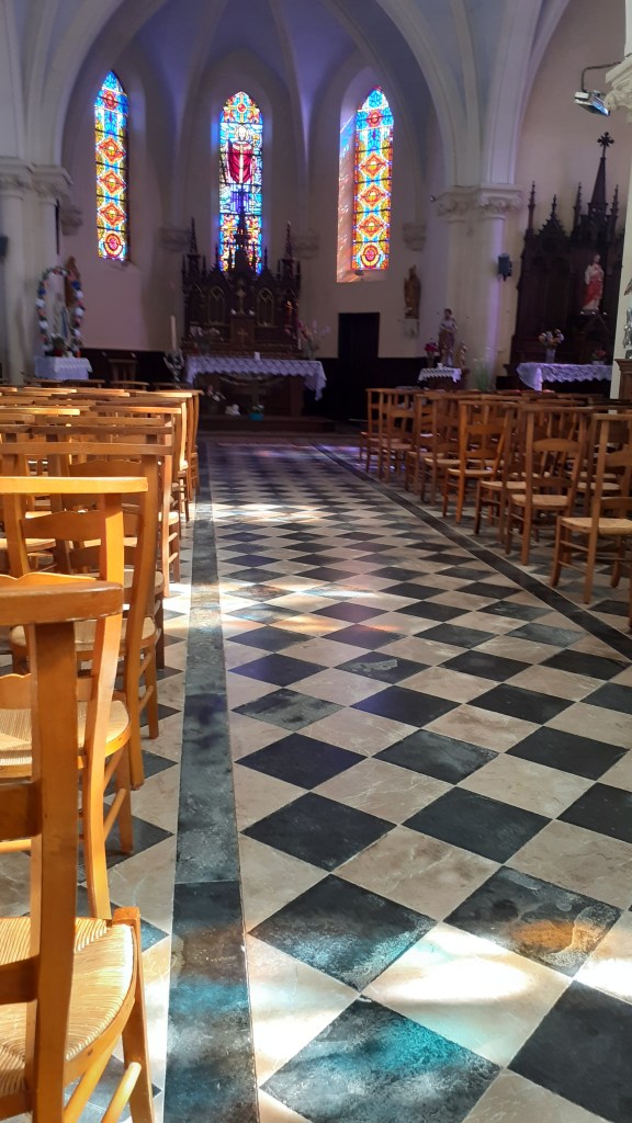 At Caffier, a fairly nondescript village between Wissant and Gûines, something possessed me to enter the church. If I’d been following my guidebook religiously, I would have taken a left turning before reaching the church. But as usual I wasn’t paying attention – mungchacha as they used to call me in Cantonese in Hong Kong – head in the clouds!