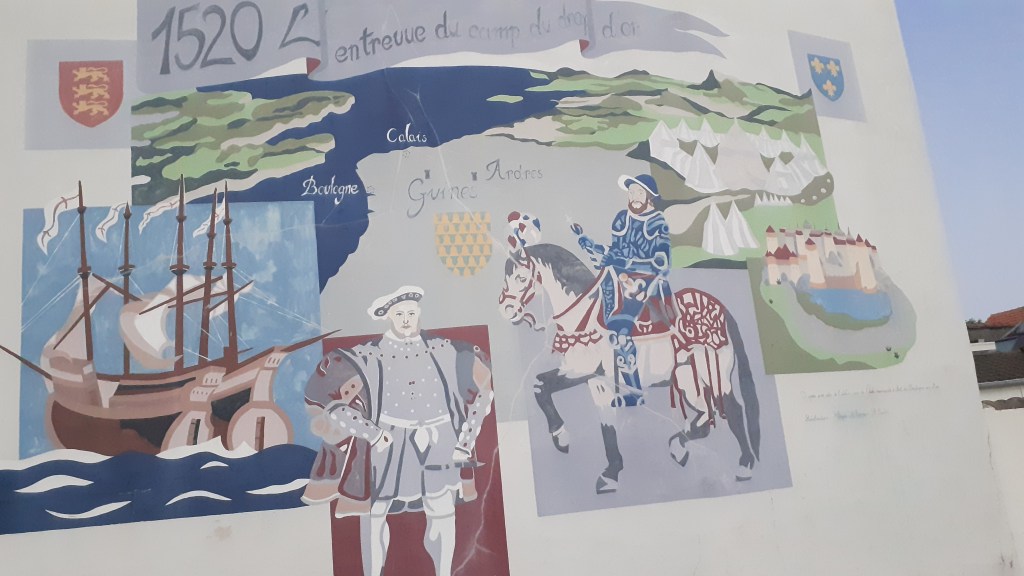 As so it was on to Gûines – site of the historic meeting between King Henry VIII and the French King Francis I in 1520. Nobody is completely sure where the actual meeting took place, but it was somewhere between modern day Gûines in the English Pale ( whence the expression ‘beyond tgexpale’ is derived!) of Calais and the town of Ardres in France. It was the first post medieval summit where the young English King went to great pains to impress the French King, Henry I, with his power and wealth – hence the description of the meeting as the ‘Field of the Cloth of Gold’.
