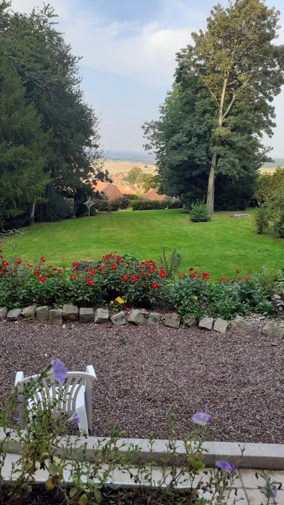 It was sad to say goodbye to Mme Lysensoone and her bees. A neighbour’s dog was curled up contentedly in the dining room as I wrote some suitably effusive comments in the visitors’ book, put ‘le picnic’ in my rucksack and headed up the hill out of Tournehem-sur-la-hem.