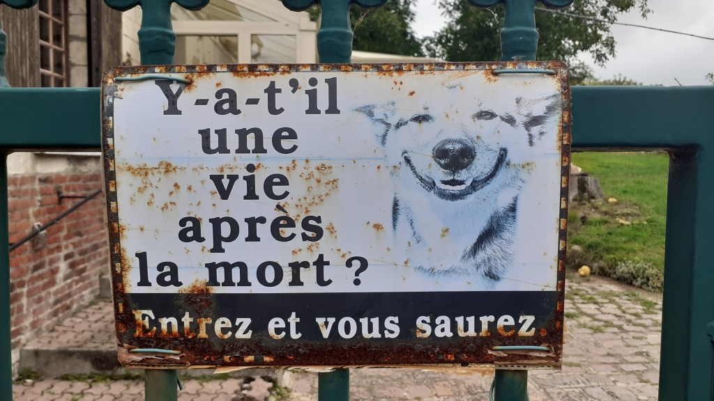 Over the last week, I’ve enjoyed the variety of house signs warning potential visitors from ill advised entry. Another one caught my eye in Ecoivres!