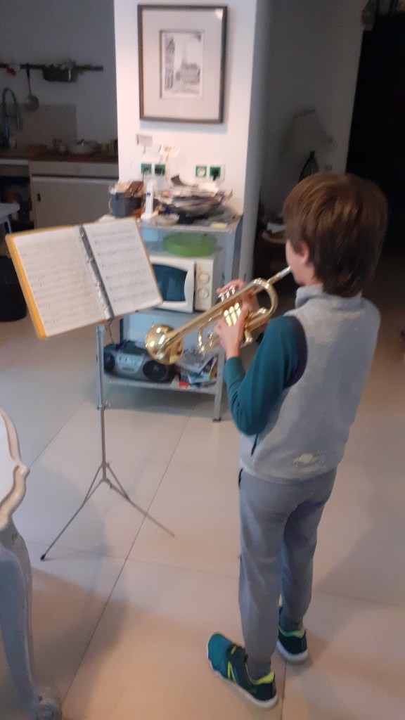 My old friend Claude and my godson, Georges, had no sooner arrived than it was time for an impromptu trumpet recital by Georges who rapidly took us through La Marseillaise to La Brabançonne and finished with a flourish with the Pink Panther theme tune!