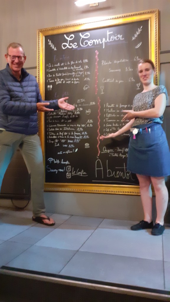 Claire Kapoun, the owner of the Au Carré St Eloi , had recommended that we sample the local cuisine at the Le Comptoir Restaurant nearby. So we sought out the restaurant and asked, Tiffany, the waitress, what she would recommend. Without a moment’s hesitation came the response – “Andouillette”.