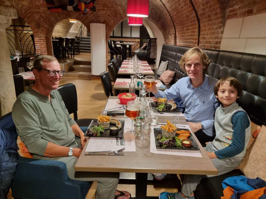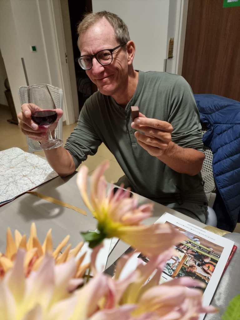 We retreated to our lodgings at the Au Carré St Eloi and tucked in to a bottle of red wine and Belgian chocolates that Claude had kindly brought from Brussels. It seemed a fitting end to another stimulating and entertaining day!