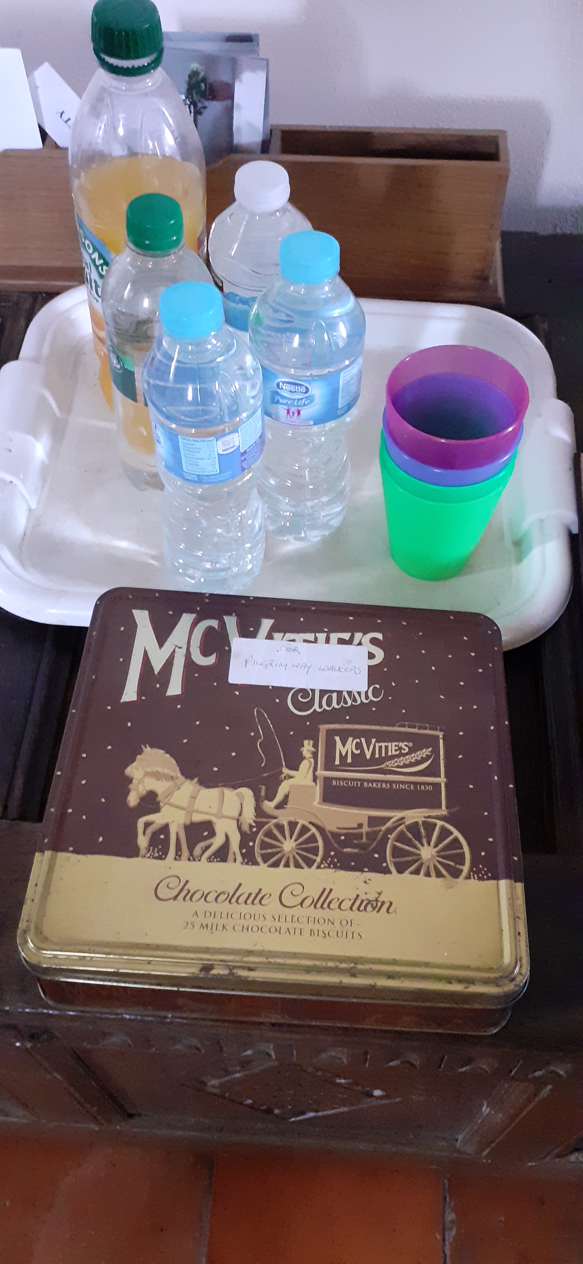 After a brief lunch stop in Alresford, I decided to drop in to the pilgrim church at Bishop’s Sutton, which my guidebook suggested might have a pilgrim stamp for my passport. Sure enough there was indeed a Pilgrim stamp and what is more there was a tin beside it on the table, marked ‘For Pilgrims’. Intrigued, I gently praised it open. And what was inside. Miracle of miracles, the answer to my prayers – Club chocolate biscuits. It was a day of Divine Providence!