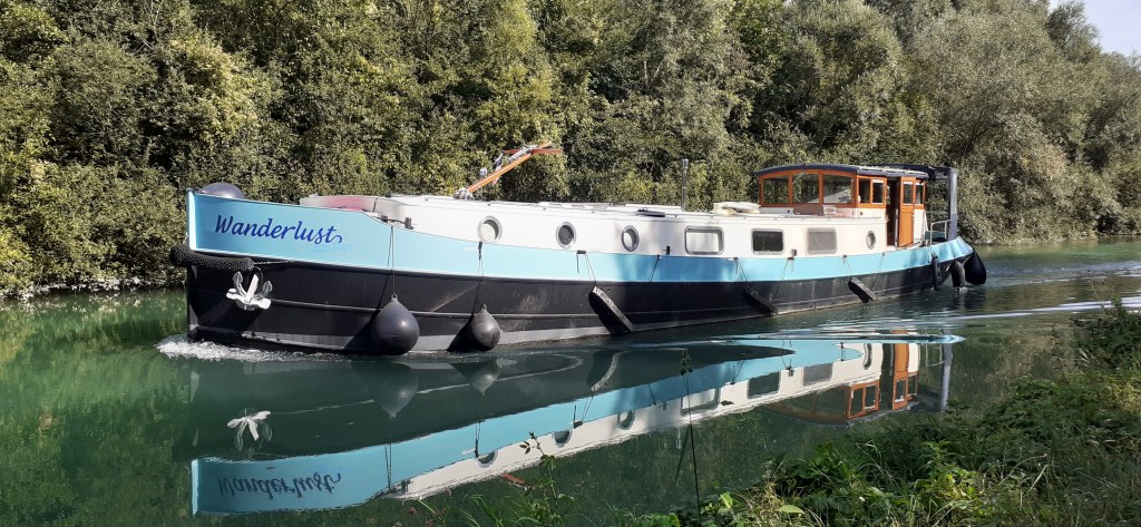 No sooner had this thought passed through my mind, than what should appear around a bend in the canal? Yes, you guessed it – a pleasure boat! What was even more surprising was the name which adorned the prow – ‘Wanderlust’. It was almost like yet another message from the ‘Big Man On High’.