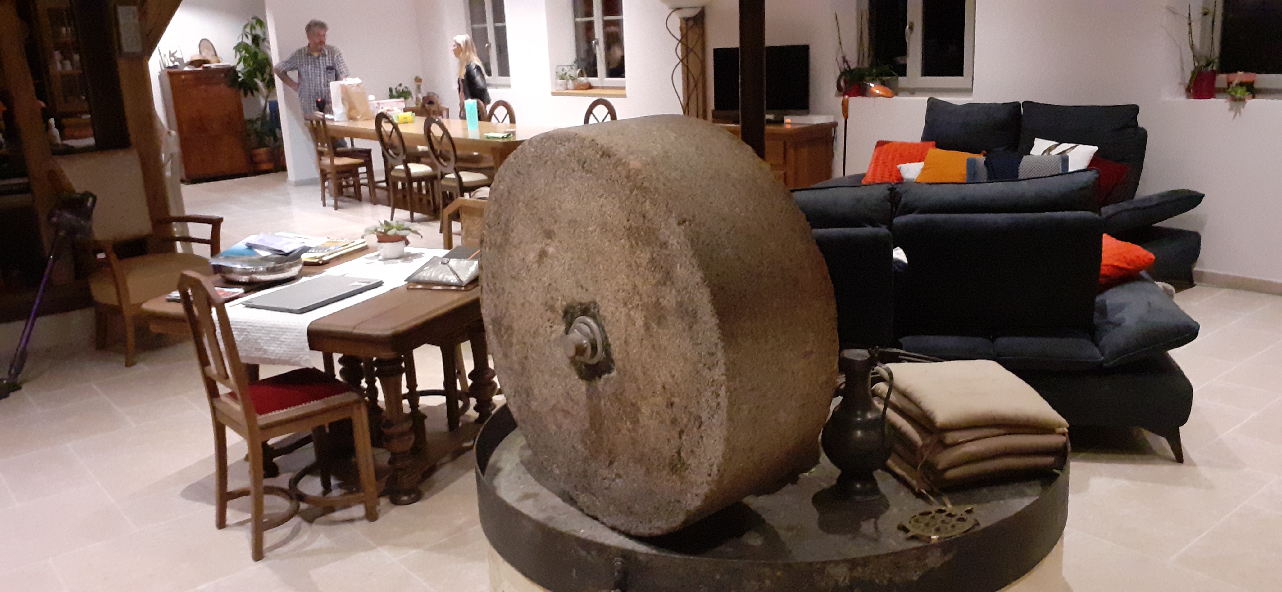 The propriétaire, Regis Jacobé explained that it had taken 4 people to operate the kernstone which was used to produce flour for the community for almost 2,000 years. It was quite a feat of engineering!