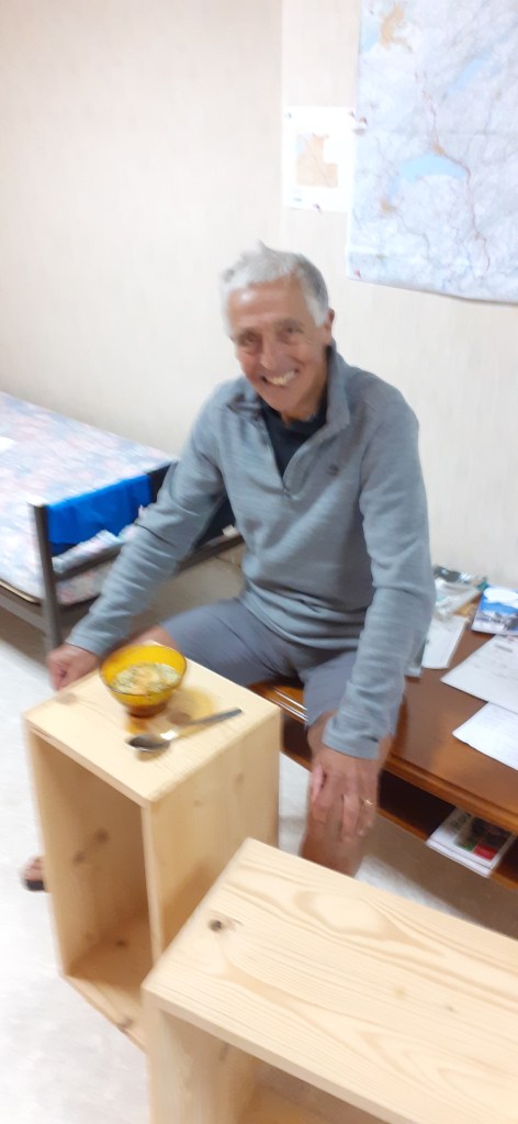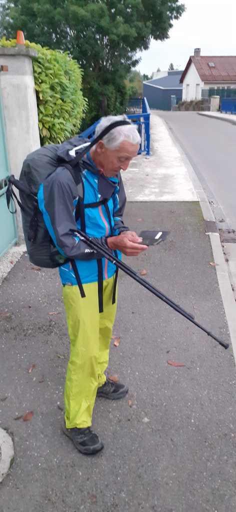 Georges is about 5ft 6 inches tall and as lean as a whippet. He seems to survive on virtually nothing – he bought a single pain au chocolat in the bakery with some reluctance, while the thought of eating lunch, later that day, didn’t seem to cross his mind! For supper he normally has a bowl of soup and a bit of bread. Georges is what I would describe as an ‘Extreme Pilgrim’.