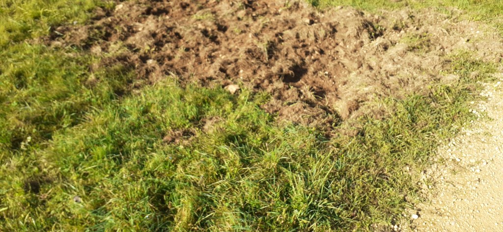 As we walked through yet more woodland, Georges pointed to some grass patches beside the path which had been dug up by somebody or something. “Sangliers” he said knowingly, “they are after mushrooms and chestnuts.”