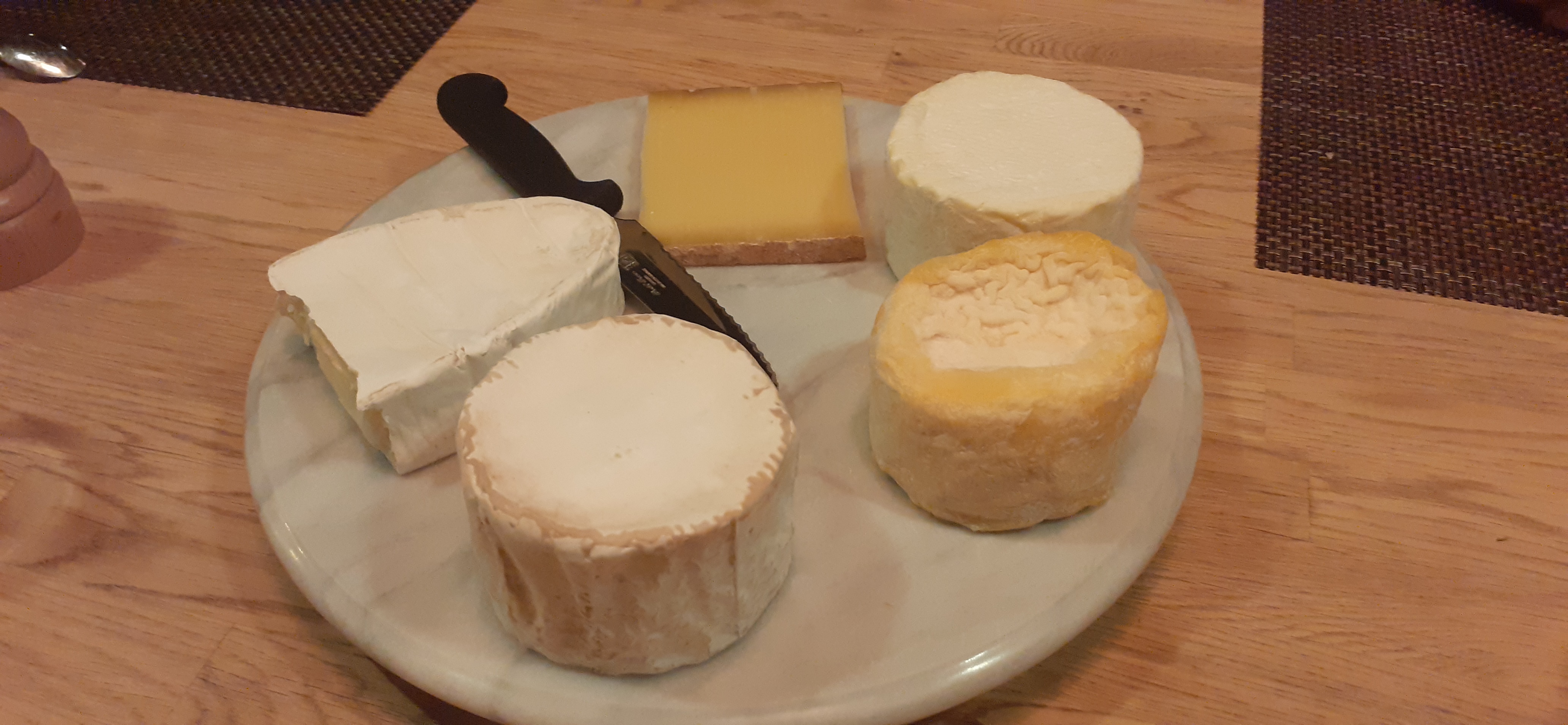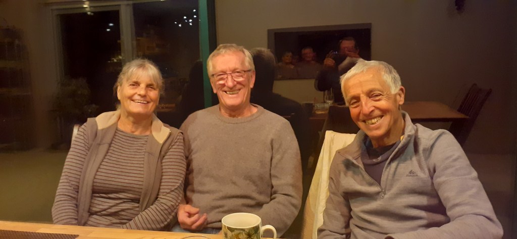 Conversation over supper flowed freely- from Dany’s involvement with the Communauté d’Emmaűs ( a charity set up in 1949 whose aim is to integrate into society disenfranchised people who are looking for a place to live, work and rebuild their lives), to cross country skiing ( Georges had worked for many years as a cross country skiing instructor), to the joys of owning dogs (Dany and Dominique own a friendly black poodle called ‘Guidou’) to the mysteries of Brexit and what the French think about Boris Johnson. The excellent food and stimulating company made for a thoroughly entertaining evening.
