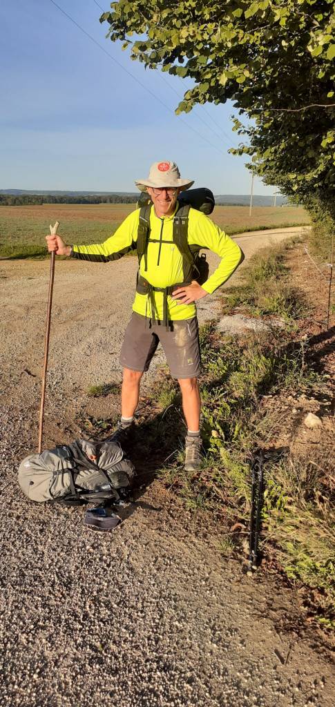 At midday we stopped at a small clearing in the forest. While Georges ate his lunch I inspected my boots. After over 1,000 km, there were definite signs of wear and tear. On the heels of both boots, the lugs had completely worn away leaving the exposed foam underlay visible. The big question is how long they will last before they fall to bits! Maybe there will be an outdoor shop in Besançon where I can purchase a replacement pair. On the Via Francigena, comfortable boots are a pilgrim’s best friend.