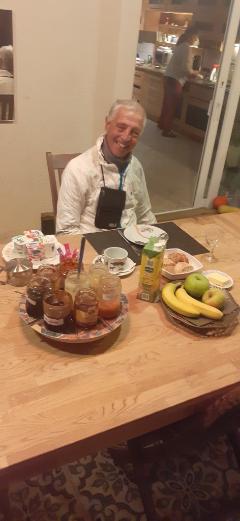 I had arranged to meet my friend Claude at a Gite d’Etape 2km outside Langres. So shortly after 6pm, I said goodbye to Georges and Baptiste and headed for the Gite d’Etape Ferme Sainte Anne. It had been wonderful to walk the last few days with Georges. He had been great company and we’d spent many hours chatting about everything from cross country ski-ing, long distance footpaths we had walked, to the French Enlightenment, Brexit and Agatha Christie mysteries of which Georges was an avid fan. Half the fun of going on pilgrimage is meeting complete strangers and forming a close bond with them. I certainly felt that I had established a close friendship with Georges over the last week since we first met in the hostel at Brienne le Chateau.