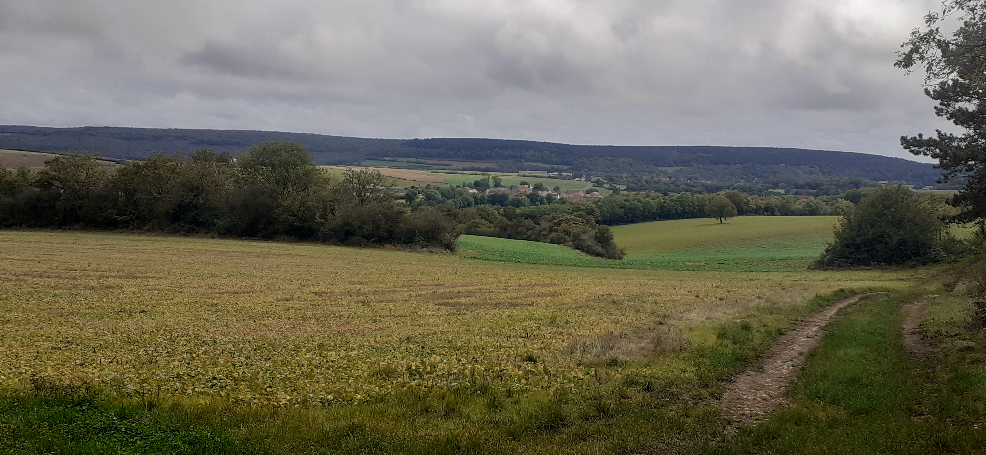 Shortly after lunch, I reached the crest of a plateau and in the distance made out the silhouette of what appeared to be another pilgrim walking towards Champlitte.