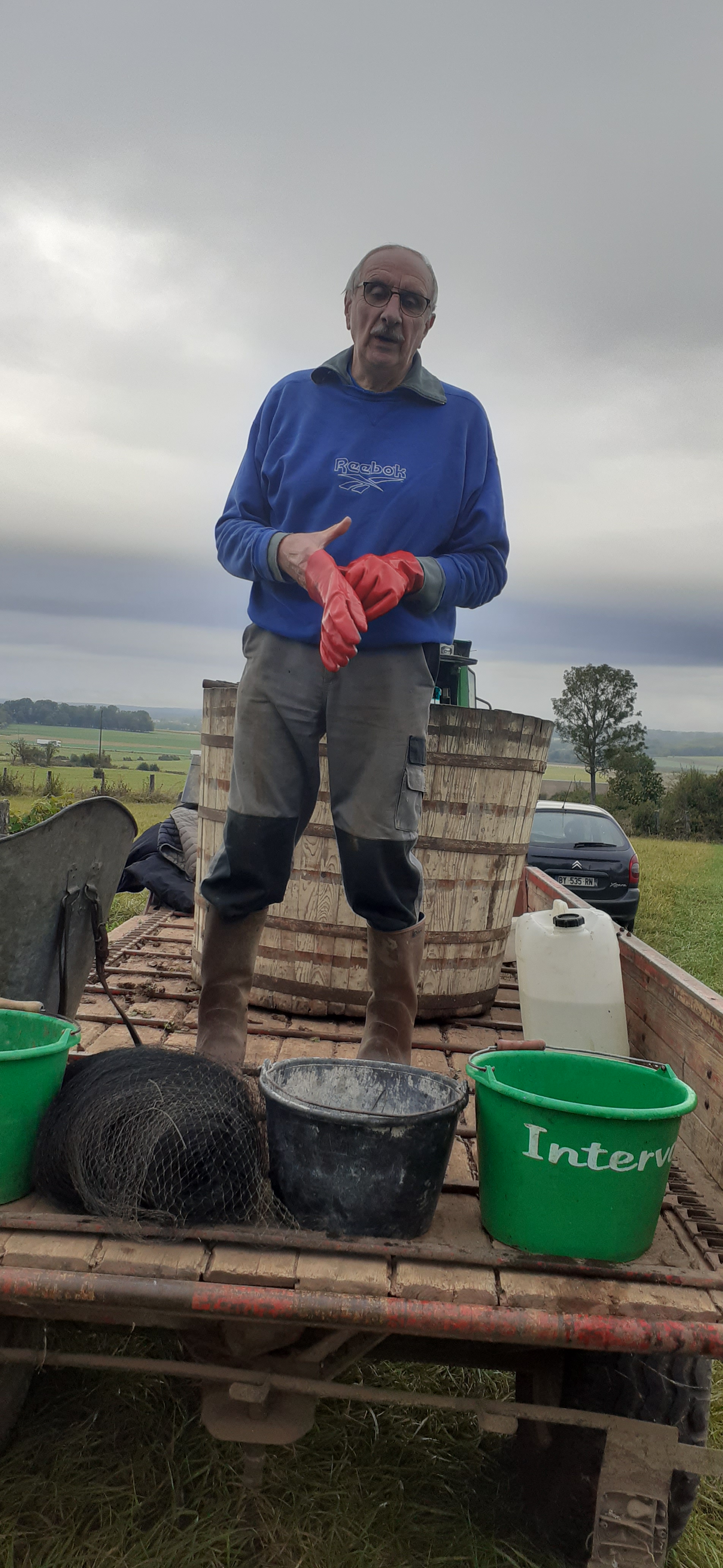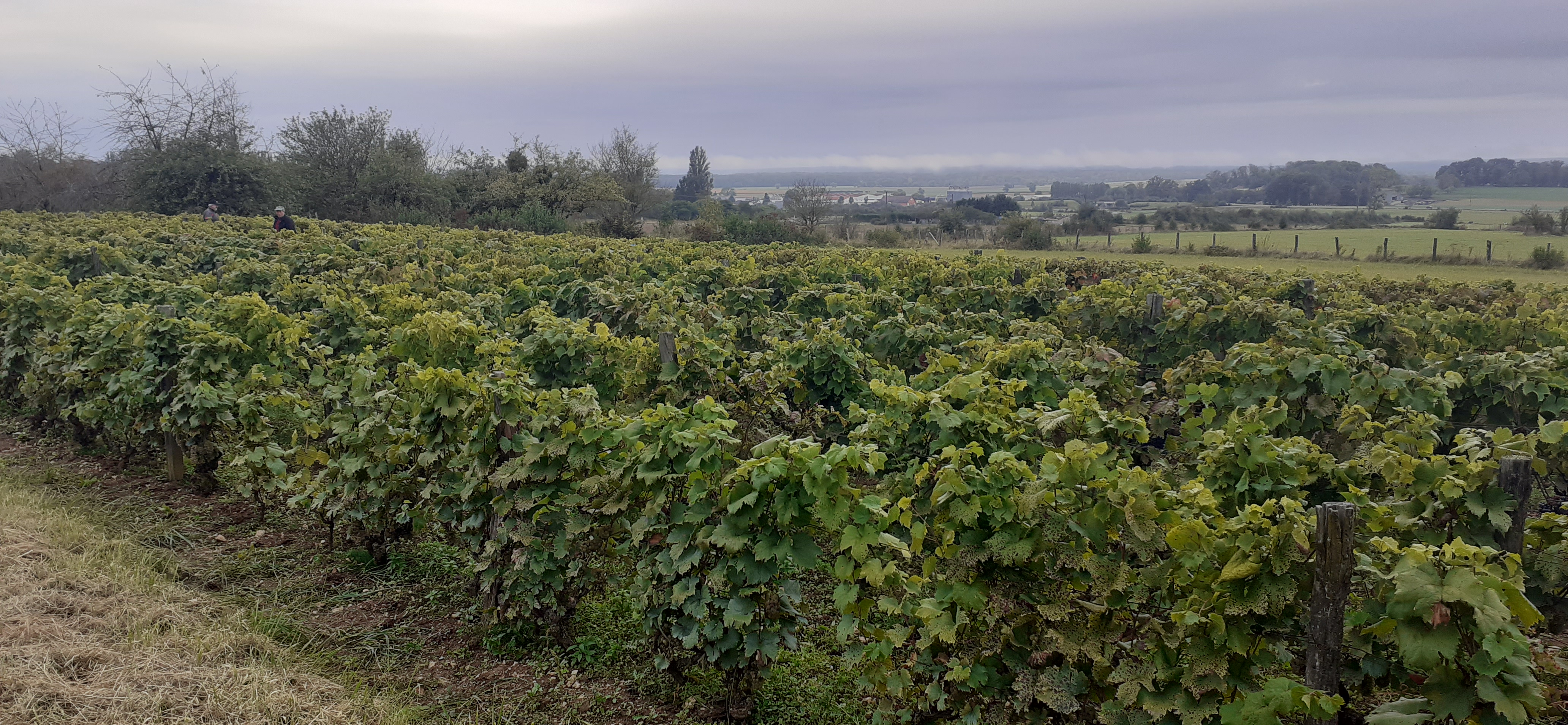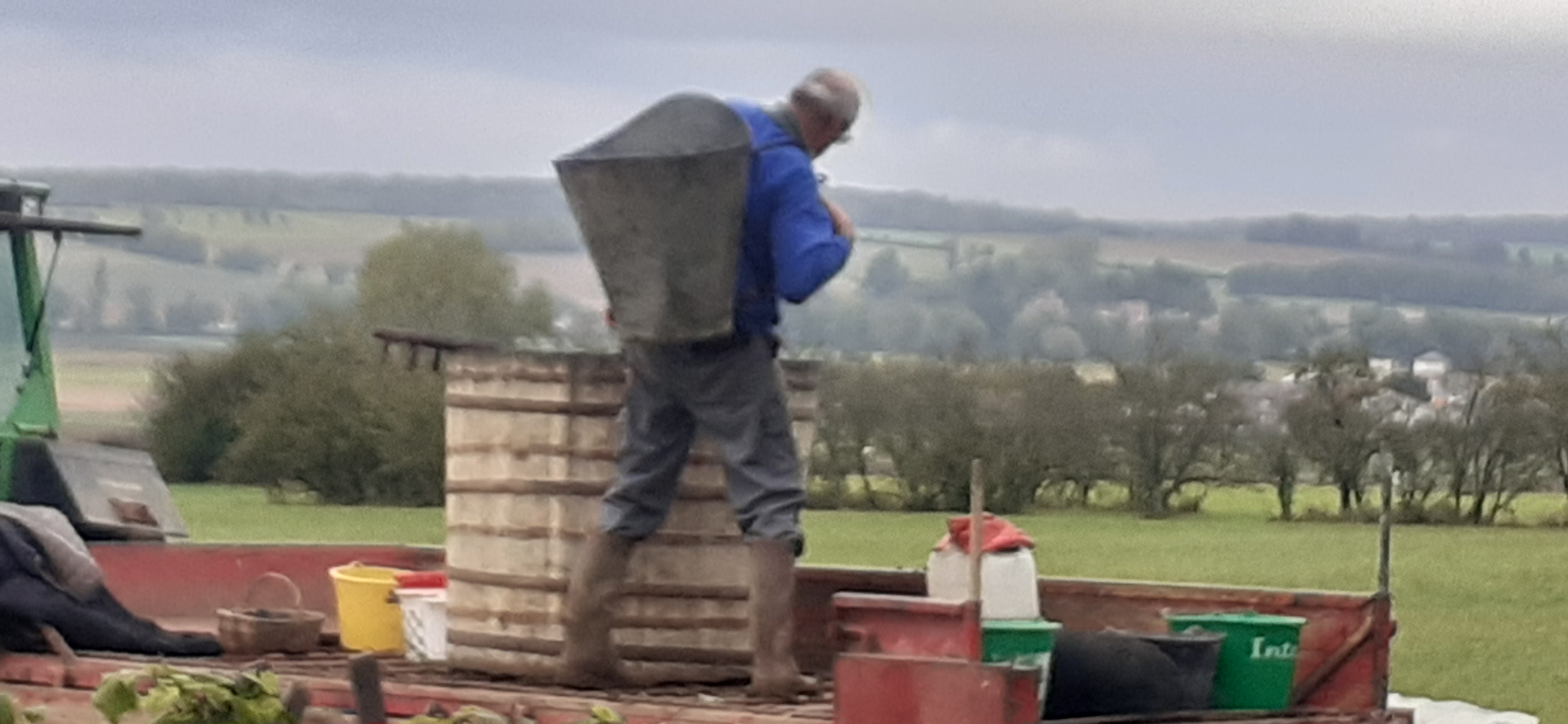 Leaving Gy on the road back towards Bucey-lès-Gy, I saw some people harvesting grapes. I stopped for a chat with a chap who was loading grapes onto a truck. His name was Charles. I asked him how the harvest was going. Not so well came the reply. The combination of botrytis, mildew and the return of “the birds” meant that yields had been poor. With this he scooped out a bunch of grapes from his trailer and placed them in my hands.
