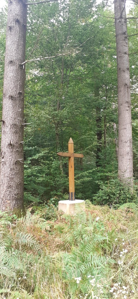 Most of the morning’s walk was through yet more woodland. I didn’t get lost but the terrain was frankly uninspiring. The highlight was a solitary wayside cross in the midst of the woods.
