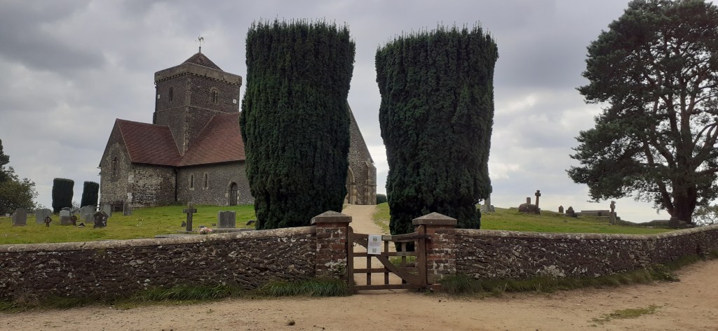I suspect that Richard’s departure was cunningly designed to avoid gut busting hill climbs, the first of which involved the ascent of Saint Martha’s Hill, also known as Martyr’s Hill after Thomas Becket. The hill rises 570 feet and gives a wonderful panoramic view over 7 counties.