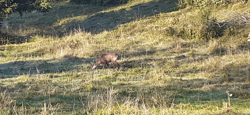 I’ve never seen a chamois in the flesh before so this (along with numerous red squirrel sightings) was a first for me. Of course seeing a chamois was a reminder that I was approaching the Pyrenees as the chamois native to this region as well as the mountains of south and central Europe, Turkey, and the Caucasus. Chamous live in precipitous, rugged, rocky terrain at elevations of up to 3,600 m (11,800 ft). In Europe, the chamois spends the summer months in alpine meadowland above the tree line, but move to elevations of around 800 m (2,600 ft) to spend the winter in pine forests.