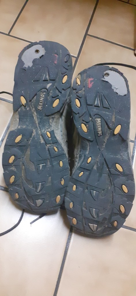 At this juncture, some of you may be wondering what happened to the Great Gaffer Tape Experiment with my boots which I initiated in Pontarlier. Well it didn’t go brilliantly well. I think the gaffer Tape must have fallen off after a couple of kilometres. The key question now is whether my boots will last until Martigny (130 km away) where I finish this year’s walk on Sunday. Looking at the state of them this morning, it is going to be ‘touch and go’!