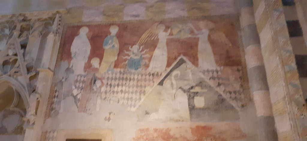 There was nobody else in the Priory when I entered. I was immediately struck by the simplicity of the architecture and also by the wonderful vaulted ceiling and 12th century paintings which adorned the walls.