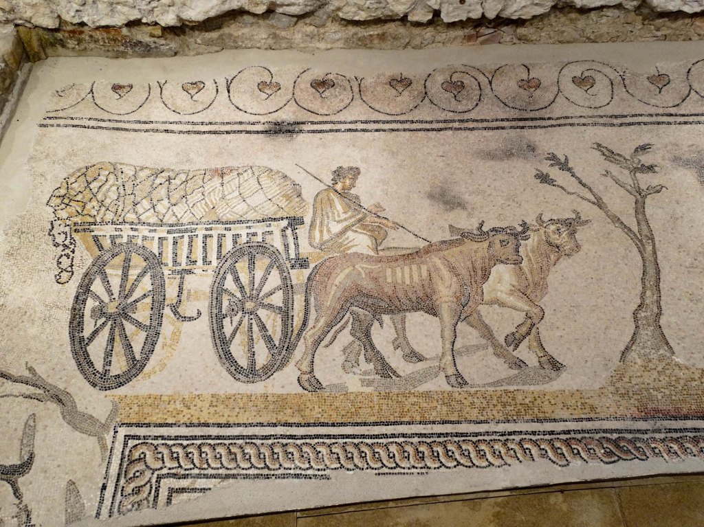 The Romans founded a settlement in Orbe known as Urba in around 150 AD. In the 19th century a huge 100 room Roman villa was discovered. Mosaics dating from 200 – 230 AD decorated eight of the villa’s rooms and depict gods, trompe l’œil geometric shapes and figurative scenes of Greek mythology, such as the famous labyrinth of Theseus and the Minotaur.