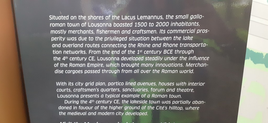 Tempting though it is to launch into a lengthy monograph about Lausanne in Roman times, I’m going to post the relevant details from the informative notice board instead!