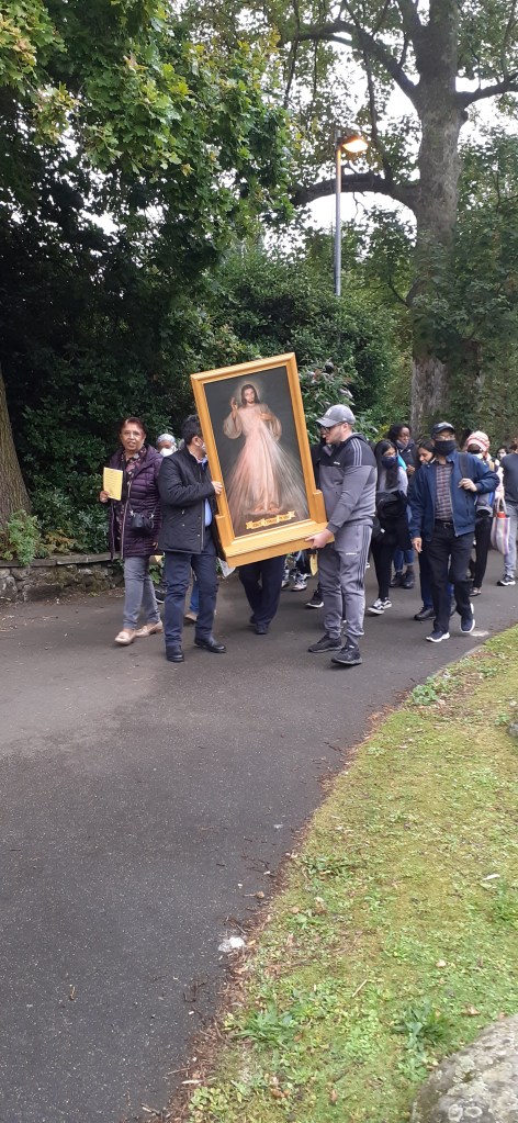 As I was leaving the Priory I encountered a large gaggle of people parading a portrait of Jesus Christ and heading towards the main chapel. The Indians from Gillingham were not amongst them, but I did overhear some very animated Irish voices chatting away in the throng.