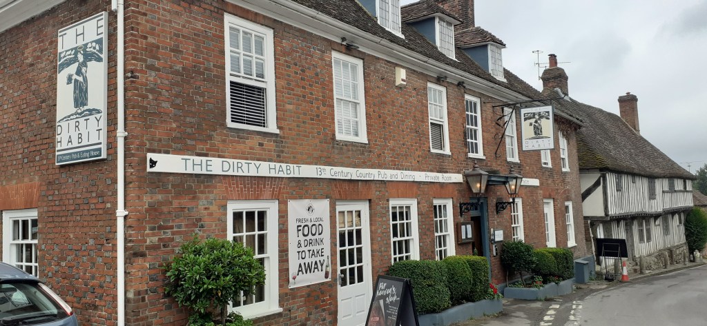 The pub signs were a constant reminder that I was on the original pilgrim route. I passed the Black Horse Inn at Thurnham and dropped in to the Dirty Habit pub at Hollingbourne for a pint of diet Pepsi.