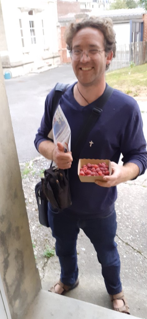 Day 3: Rev Paul Bradish and Rev Jemima Lewis, St Swithin’s Church, Headbourne Worthy – they welcomed me and prayed for my safe journeyDay 4: Rev Julian Hubbard (right) who put me up at Compton Richard Hemingway who walked with me from Compton to GuildfordJames and Sarah Hutton who gave me lunch at Netley HouseDay 5: Mark Eastwood who out me up in Dorking and drove me to see my parents’ graves at HeadleyMike Griffins the caretaker at Merstham Cricket ClubDay 7: Rev Vince and Veronica Short who put me up at TatsfieldMichael & Jessica Medd whom I bumped into on a hillside near WrothamDay 8: All Saints Church Wouldham – Rev Mike who showed me around the church and Martin the clock winderDay 10: Phil and ‘Creepy’ who work on the Eastwell Park Estate and showed me where the last Plantaganet was buried in Eastwell ChurchAnthony Perrett and his wife who gave me coffee and a poached egg at Chilham RectoryJenny Walpole the curate at St Dunstan’s Canterbury who gave me a tour of the churchPauline the churchwarden at PatrixbourneMike whom I met on the village green at Shepherdswell exercising his 2 Borzoi dogs.Mike and Stella Pascall who put Olivia and I up at Shepherdswell, cooked us a fantastic supper in their garden barbeque house and gave me a bicycle to get on the Dover – Calais ferry.Day 12: Another Mike! This one was a kiwi from North Island who I met on the way to DoverDay 13: Jeremy a sports car importer from Newcastle whom I met on the quay in Dover about to board the ferry.Riccardo and Luigi who bought me breakfast on the Dover-Calais ferryDay 14: Hans, a walker from Ghent whom I met in the Forest of GuinesDay 15: Mme Lysensoone whom I stayed with in Tournehem sur la HemDay 16: Sister Lucie at the Abbey of Notre Dame in WisquesEva and Martine, fellow pilgrims staying at the Abbey if Notre Dame in WisquesDay 18: Dean from Seattle at the Gite D’Etape Eden at ThérouanneDay 19: Colette Gevas at the Ferme des 2 Tilleuls at AmettesDay 20: Pierre-Yves and Christine Lamarliere who put me up at Béthonsart and made a generous donation to the ‘Raise the Roof Apoeal’Day 21: Claire Kapoun whom we stayed with in Arras at the Au carré St EloiClaude and Georges in ArrasWith Tiffany our waitress at Le Comptoir Restaurant in ArrasArash, an Iranian investment banker I met in ArrasOdile Samain whom I stayed with in BapaumeSylvain who gave us some wild raspberries in the church hostel in PéronneDay 25: Elfriede Coulerot whom I met in the street in Tertry was a keen anglophileDay 26: Mme Tordeux-Bremard whom I stayed with in LaonDay 27: Mme Dumon and Monsieur Portet whose garden I camped in at PontavertDay 29: Fellow pilgrims Molly and Ken with their daughter in the Abbey of St ThierryDay 30: Fellow pilgrims Patrick and Marie in the Abbey of St ThierryNun Lawrence at the Abbey of St ThierryBenjamin, who worked for the Commonwealth War Graves Commission was helping out with the grape harvest at St ThierryDay 32: Sylvie Gerard of the Pré en Bulles Hotel where I stayed in Trépail gave me a bottle of wine ‘on the house’sSebastian, who was helping out with the grape harvest in Trépail let me have lunch and coffee from the food in his vanDay 33: Elisabeth and Jean Paul Lesoeur who made me most welcome at Le Pavot Bleu Gite in Chalons en ChampagneDay 34: Baptiste, a French pilgrim walking to Rome whom I met outside Amand-sur-FionDay 34: Régis and Catherine Jacobé who I stayed with at the Moulin du Ruet Gite in St Anand sur FionDay 35: Marie-Jo and Francis at Blaise-sous-ArzillieresDay 36: Pheasant shooter near the hamlet of Au Milieu su Nulle PartDay 36: Jean-Philippe Mignot who I stayed with at Rosnay l’Hôpital and gave me a tour of the churchDay 37: Agnes from Nîmes who I met on the bridge at Chalette y Voire. She had walked to CompostellaDay 37: Anne who flagged me down in the street and welcomed me to the church hostel at Brienne le ChateauGeorge’s, a fellow pilgrim, who I first met in the hostel at Brienne and spent a number of days walking with.Day 40: Dany and Dominique from La Cressonniér Gite at Mormant-LeffondsDay 41: With Claude and the owner of the Ferme St Anne Gite at LangresDay 45: With Christophe Desre atcthe Au Bon Vivant Gite at Dampierre sur SalonArianna, a fellow Italian pilgrim whom I met in Dampierre and again in OrnansWith Khaled, Samir and Aymen from Tunisia who cooked us lamb couscous at the Au Bon VivantDay 46: Etienne and Brigitte, French pilgrims I met outside Bucey-lès-GyNadine Thorelle, whom I stayed with at the gite La Charmotte in GyDay 47: Charles who was harvesting grapes outside GyMario, an Argentinian I met at AucheronsDay 49: Larent and Karina whom I stayed with at the Au Sanglier qui Fume Gite in OrnansDay 51: Mireille Godart whom I stayed with in JougneDay 52: Father Jean-Luc Martin who welcomed me to the church hostel in JougneDay 53: Francine and Nicole whom I stayed with in Villery-sillars who cooked me Raclette for supperDay 55: Otto and his English wife whom I met in VeveyPatrick, a Dutch carpenter, I shared the evening with at a campsite in VilleneuveDay 56:Timothé who shared his food with me at the Abbey of St MauriceCanon Cyrille Rieder who welcomed us at the Abbey of St MauriceDay 57: Nilde, a pilgrim who had walked the Via Francigena whom I met in MartignyDay 57: Pascal, the owner of the Gite Au 3 Collines I Sembrancher, where I stayedDay 58: Archie and Louisa Montagu-Pollock who put me up in Geneva on my final night and cooled me a lovely meal