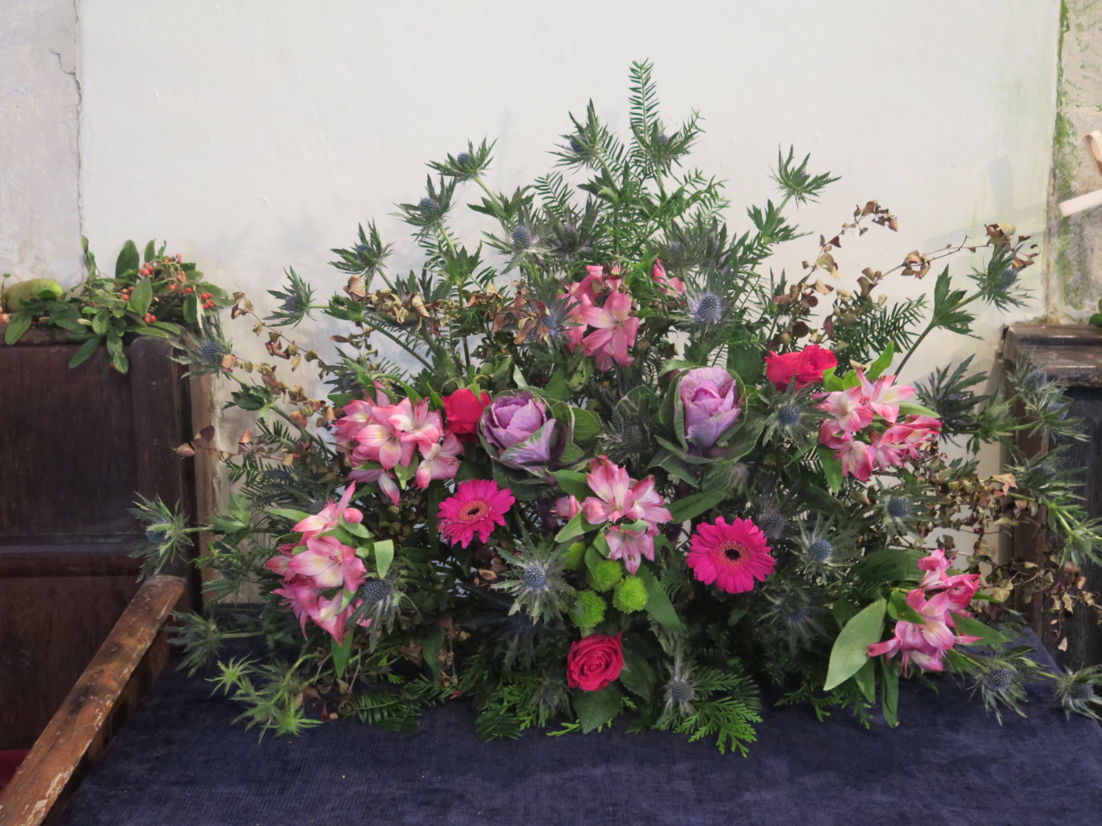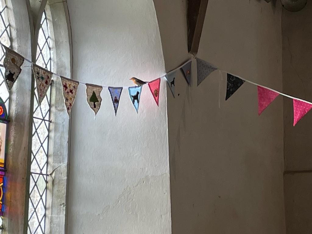 On Sunday morning, midway through the Harvest service, I heard a flutter of tiny wings and saw the little robin above my head. It was still there when the service drew to a close, once more perched on the church bunting.