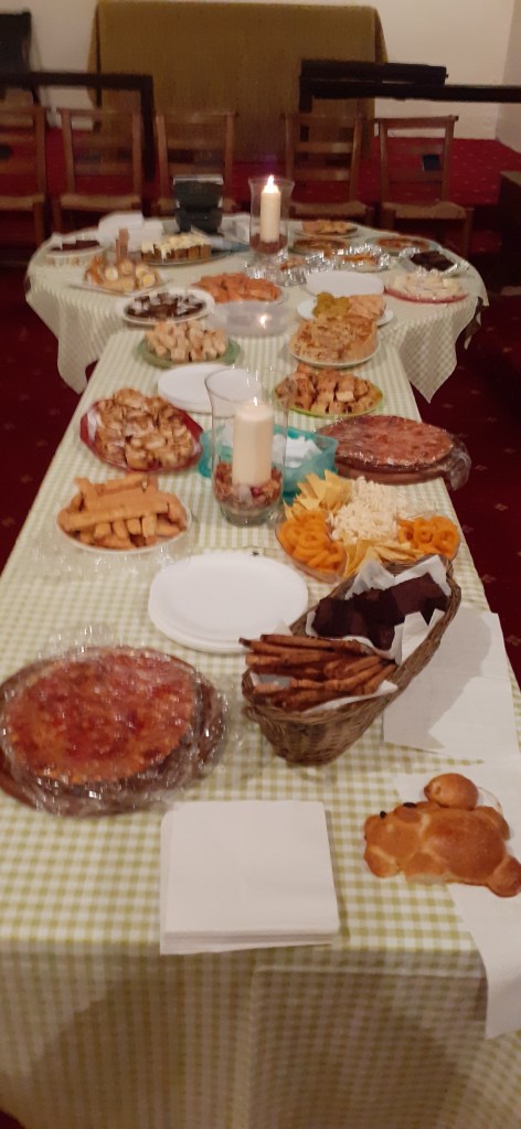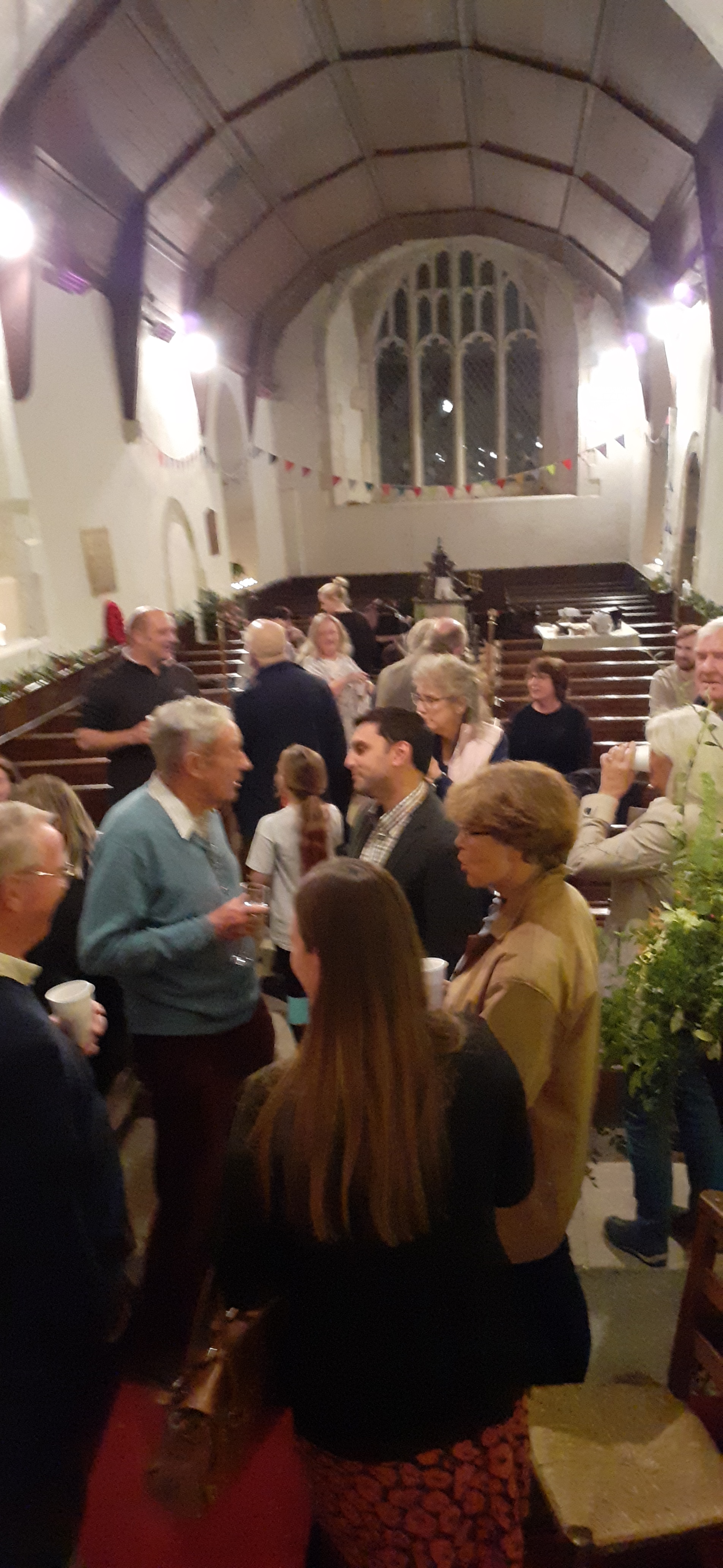In the evening it was hugely gratifying to see so many people in the village packed into the church enjoying the harvest get together.