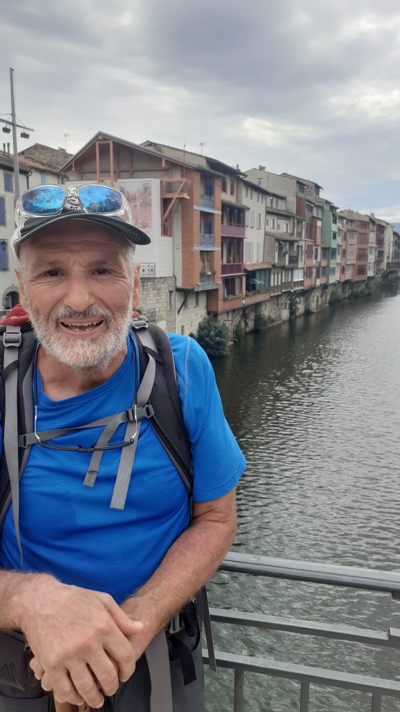 I struck out towards Castres with Dan, an amusing, erudite and convivial Greek American from Wisconsin. Over the ensuing couple of hours we chatted about everything and nothing: from Dan’s time in the US Peace Corps in the Solomon Islands, to his love of cross country ski-ing, to the current state of US politics and back to walking, including Dan’s fledgling plans to walk a section of the Via Francigena in Italy next year. Needless to say, I waxed lyrical about the Via Francigena, mentioned my own plans for 2024 when I hit the big 60, and gave some tips about the pilgrimmage to Rome.
