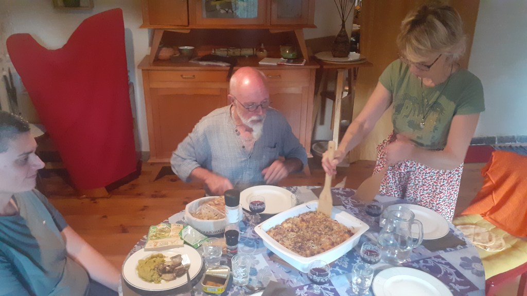 All the ingredients in the soup and main dish had been sourced from her vegetable plot beside the gite. As the wine flowed, Mireille explained why she gone on a pilgrimmage to Compostella and why she had subsequently decided to move from Narbonne to open a gite catering to pilgrims on the Chemin d’Arles.