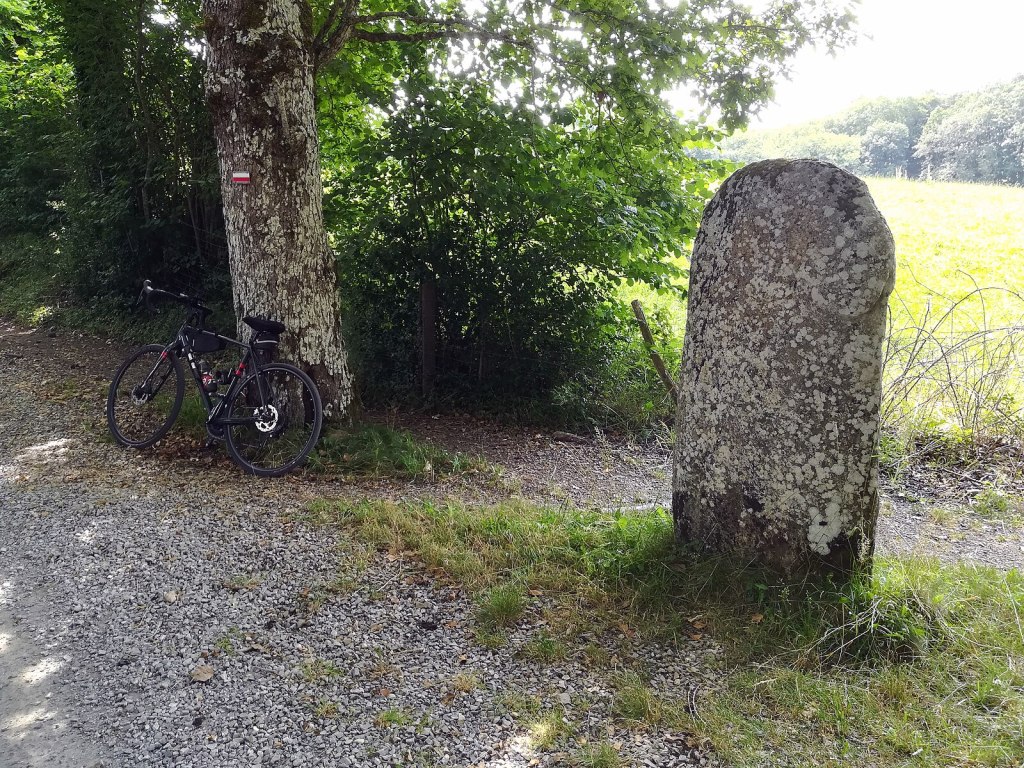 Most of the day was walking on pine strewn paths through forests. I did come across a menhir by the side of the path. It was discovered during land clearing in 1990, is made of local granite and depicts a male figure wearing a baldric.