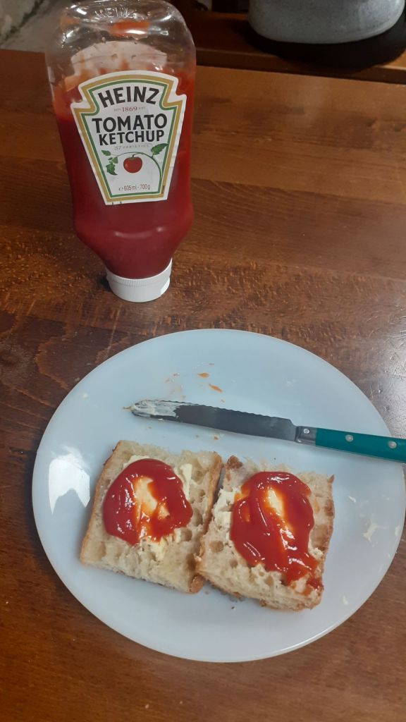 Breakfast was more of a challenge. Aubrac didn’t run to a bakery so I was forced to rely on the supplies available in the communal kitchen. These were limited to a couple of stale baguettes, some dregs of raspberry jam and some tomato ketchup. The latter with bread and butter was a new experience – probably one that I’m not going to repeat in a hurry!