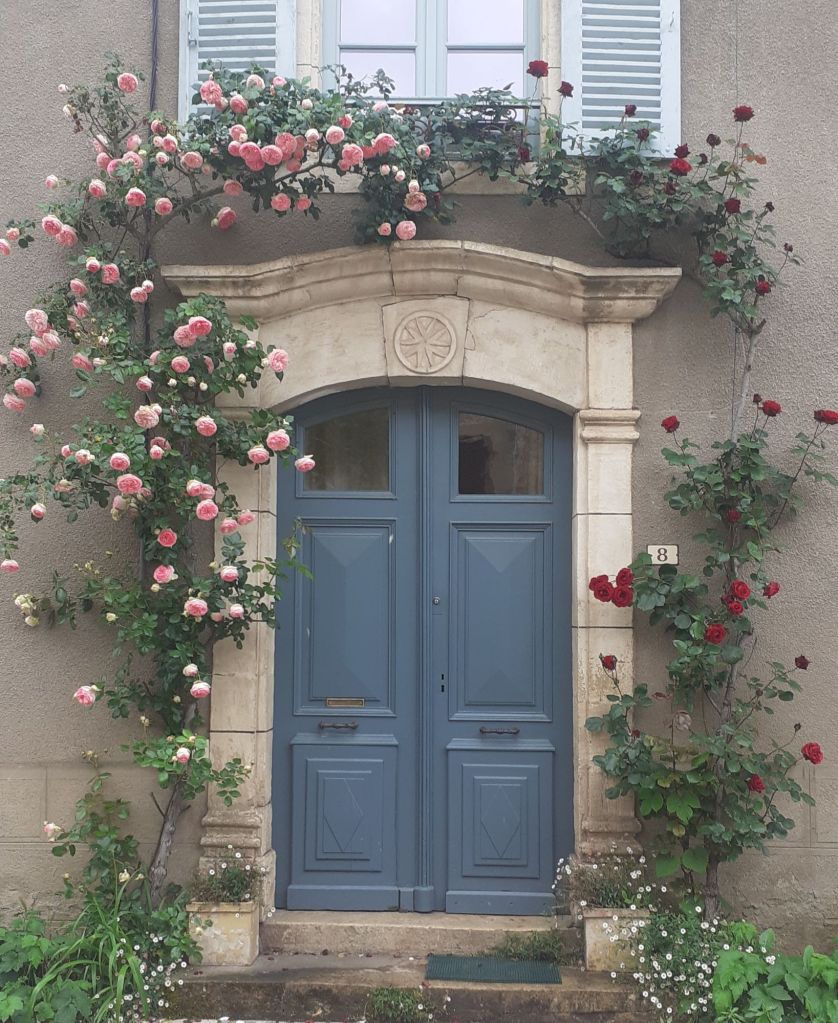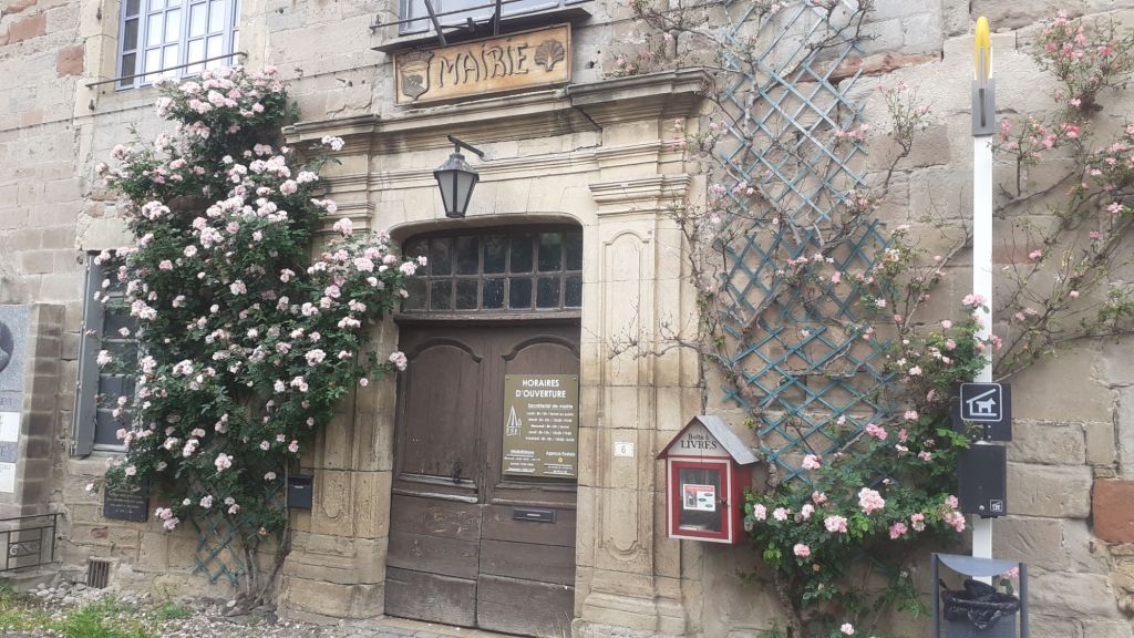 I reached St Côme-d’Olt shortly after 1pm. A pretty town with a 13th century church with a twisted steeple and houses decked with roses.
