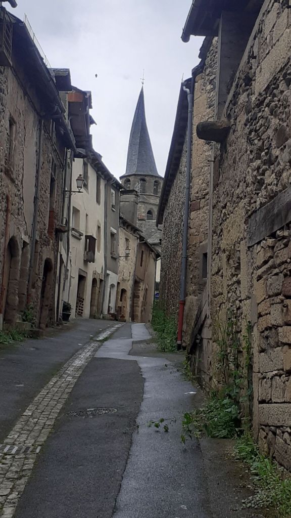 Driving rain mixed with sleet and limited visibility meant that I opted to take the road to Saint Chély d’Apcher rather than take the path across the moor. En route I met a bedraggled pilgrim from Quebec who told me that her daughter had persuaded her to walk the Chemin de St Jacques and had raved about the experience. The only difference being that when she had done the walk in 2022 the temperature had been as high as 32C!