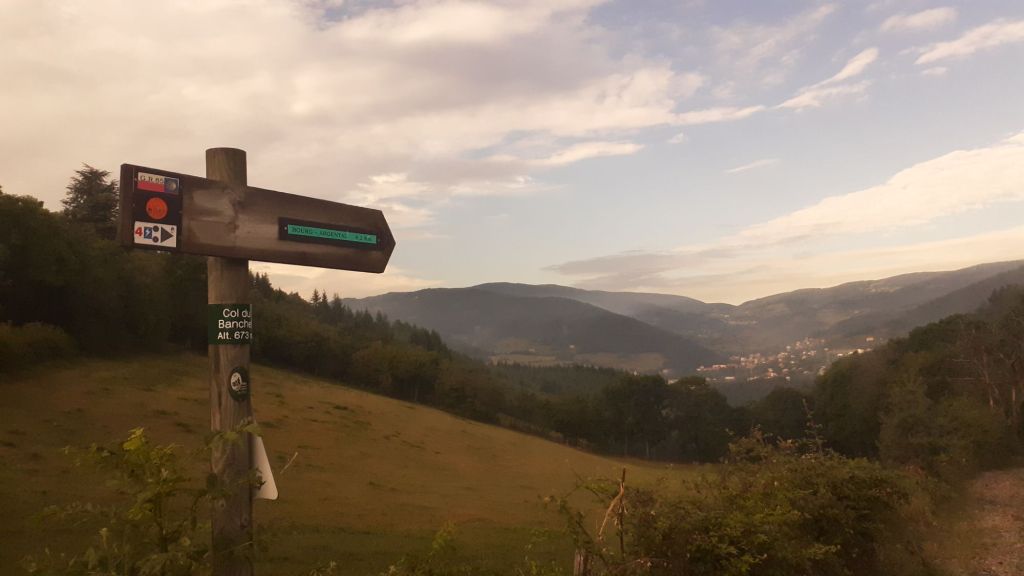 We reached Bourg-Argental just after 11am. There was time for a quick coffee at a café before it was time for Odile to head off and catch a bus back home to Lyon. I’d only met her for less than 24 hours, but we’d already swapped many shared pilgrim experiences including meeting ‘Fred’, staying in the Tower of the English in the Aubrac and the pilgrim hostel near the cathedral in Le Puy. Such are the experiences which forge between fellow pilgrims!