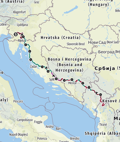 The Dinaric Alps are named after Mount Dinara, a peak of 1,831m in the center of the mountain range on the border of Croatia and Bosnia and Herzegovina. It’s highest mountain is Maja Jezercë with a height of 2.694m in northern Albania. Both peaks are part of the Via Dinarica. Albania is apparently the new Croatia. I’ll believe that when I see it.