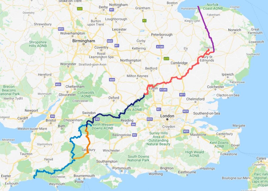 In Fact the Greater Ridgeway comprises four named trails — the Wessex Ridgeway, the National Ridgeway, the Icknield Way and the Peddars Way.