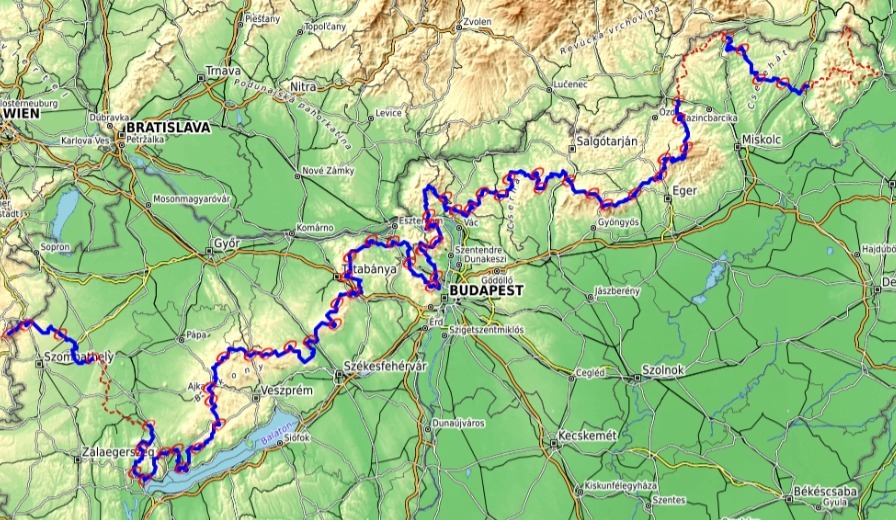 Hungary’s 700 mile/1130km National Blue Trail runs from the peak of Irottkő Mountain on the Austrian border in the west to the small village of Hollóház near the border with Slovakia in the northeast. The National Blue Trail also forms part of the E4, a European long-distance trail that runs from Portugal to Cyprus.