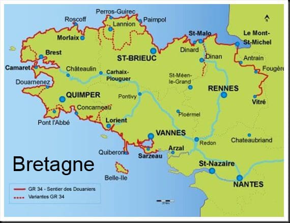 The Customs Officers Path (GR34) is the most popular long distance path in France, stretching 2,000km along the Brittany coastline from Mont St Michel to the bridge of St Nazaire.