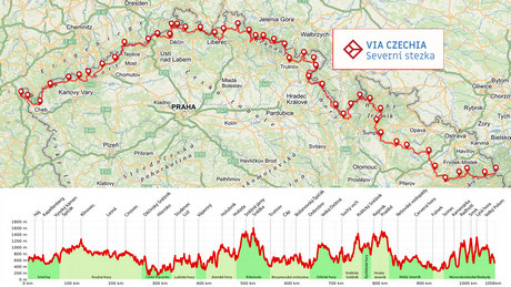 Amongst them the Via Czechia is the longest hiking and best known hiking route. The 1,060 km long trail connects the westernmost and easternmost points of the Czech Republic and crosses some of the country’s highest mountains including Sněžka (1,603 m). The North Trail traverses 18 mountain ranges, 8 environmentally protected areas, 2 national parks and countless national nature reserves. Walkers who complete the whole trail will have climbed over 50 peaks higher than 1,000 meters and set foot on the highest, lowest, westernmost and easternmost points of the Czech Republic
