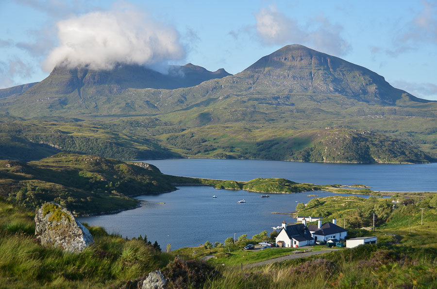 Traversing such emptiness, this hike claims numerous superlatives: Britain’s remotest village, highest waterfall, remotest beach and highest mainland sea cliffs, Europe’s oldest geological formations. But while all these held allure, my main motivation for taking on this trek was absence. Roads do not peter out up here—they scarcely exist anyway. The trail is not uncrowded—it is almost utterly unpeopled. If one wished to truly escape within Great Britain, this would be it.