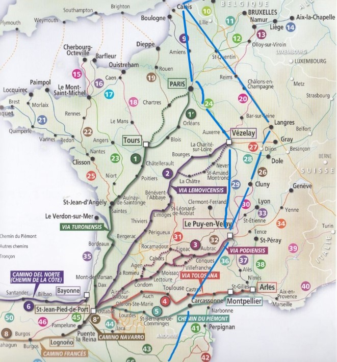 History, geology, oenology (drinking wine!) and using every opportunity to practise my French are amongst the interests I enjoy while walking. So its time for a few maps! Either of the two French routes will take me through the bits of France that were never English possessions during the height of the Angevin Empire in 1180AD. The winter months will offer ample time for added research into the history of the areas I will be passing through including the counties of Champagne,Burgundy, Velay and Toulouse.