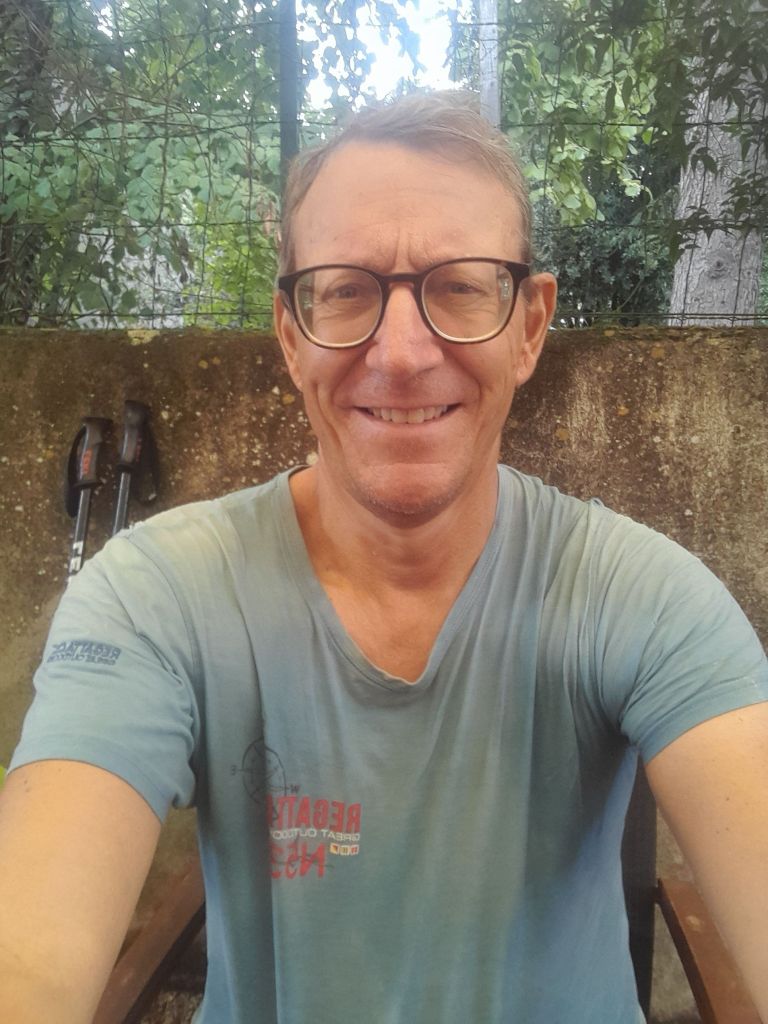Mid morning as I was approaching the village of Teilhet, I encountered a group of walkers heading in the opposite direction. Upon sighting me, without prompting, one of them promptly exclaimed ‘ You must be the English pilgrim’. Momentarily taken aback, I responded that she was correct. Whereupon she announced that her name was Elizabeth, apologised profusely for not being able to put me up for the night in Pamiers but immediately suggested I contact her friend Christy. This I promptly did, thankfully confirming a bed for the night. As the walkers disappeared into the gloom I was left wondering who on earth Elizabeth was and how on earth she knew who I was!