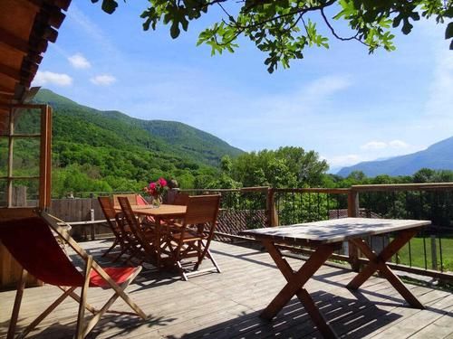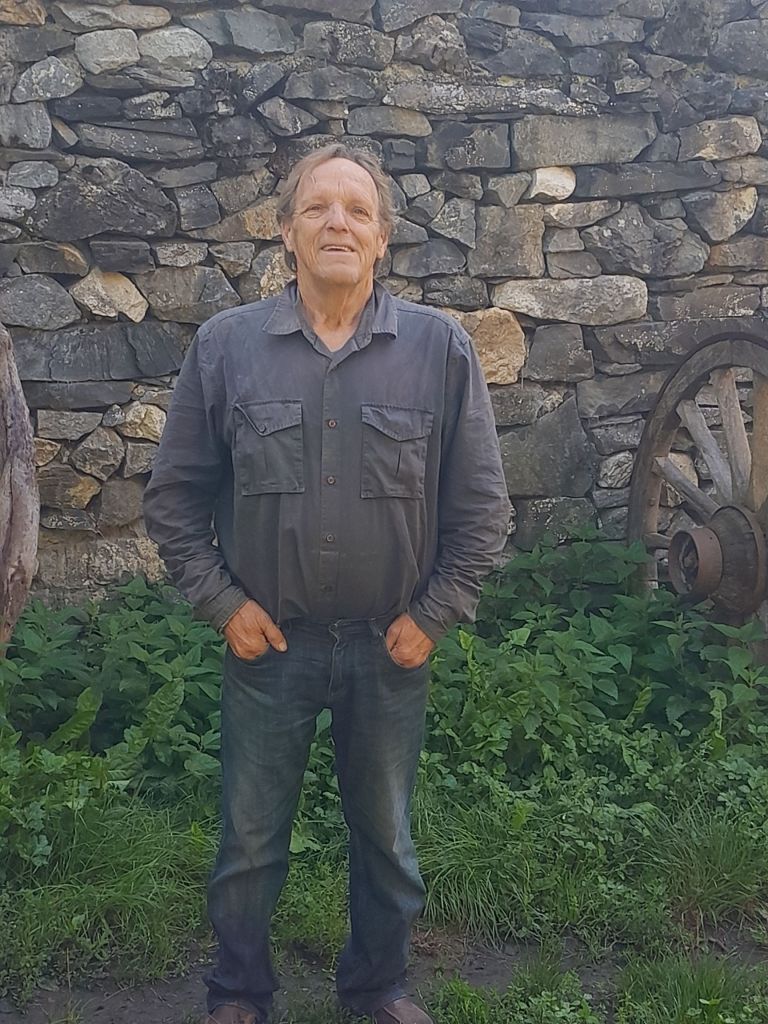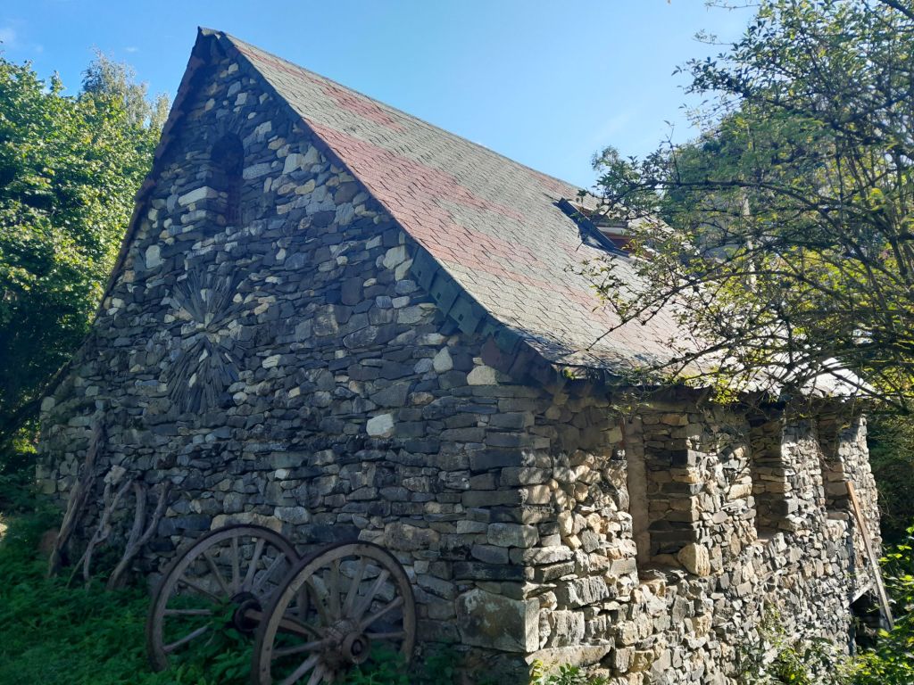 En route to Portet-d’Aspet I met a genial old man called Eginhard walking two huge mastiffs near a small house in the middle of the forest. We got chatting. A German who had lived for 30 years in Provence working as a stone mason he was now retired and had built his entire house from ruins. It was quite a feat as he had designed some wonderful sun like motifs into the walls of the house. These reminded him of his life in Provence. The area had been frequented in the 19th century by English miners who had prospected for azurite and had left many stone deposits which he had collected and used to build his house. We could have chatted all day but I still had kilometres to cover and eventually continued on my way.