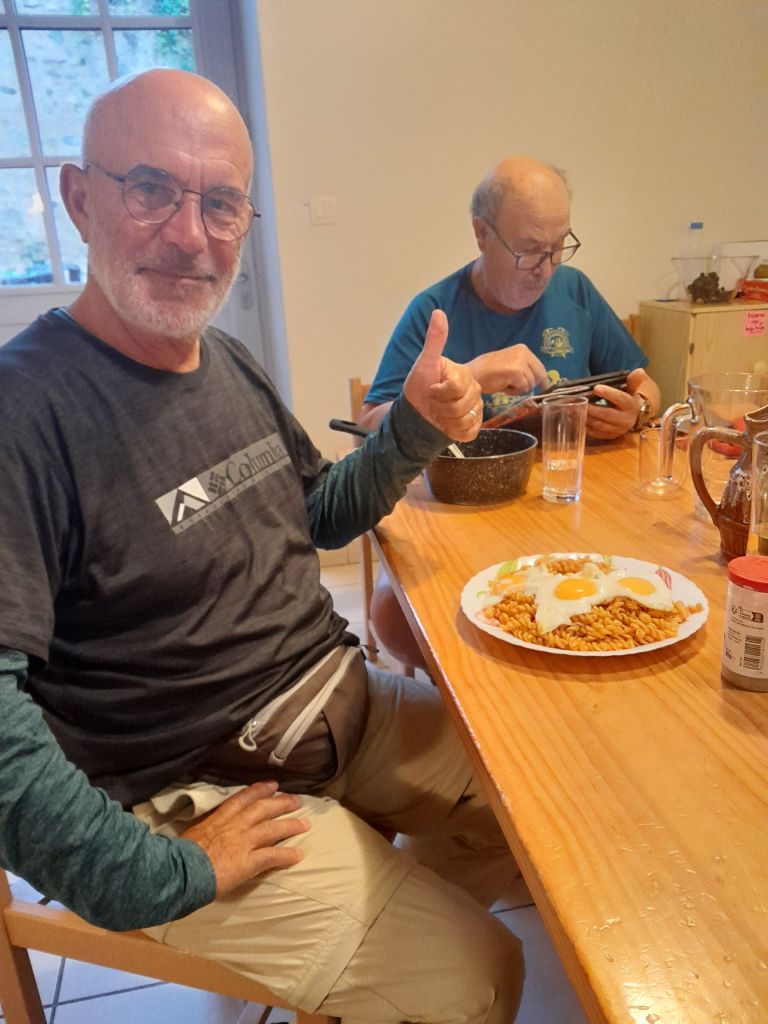 Supper at the gite proved a jolly affair. Two of the other pilgrims at supper were from Brittany and had a host of pilgrim stories to retell.